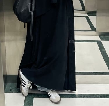 We won't spend a huge amount of time on a classic staple. Everyone wears these, flat trainers steal the show for being the most comfortable, versatile and easy option. Flat shoes such as Adidas Sambas, Old Skool Vans or even Nike Dunks pair effortlessly with abayas, skirts and dresses. They have a sleek understated look that allows for comfort and ease without compromising on style.