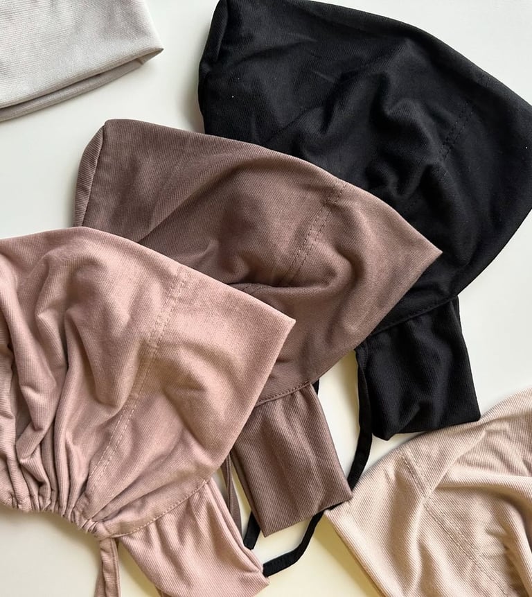 Neutral shades like black, beige, and mocha blend seamlessly under any hijab, while muted colours such as olive, rose, or navy add a subtle, intentional touch to your outfit. Each undercap style also serves a unique purpose: tube caps offer simplicity and stay-put security for everyday wear, tie-back bonnet caps allow for custom tightness and are perfect for thick or long hair, and ninja-style undercaps provide full neck coverage for extra modesty or added warmth during colder months.